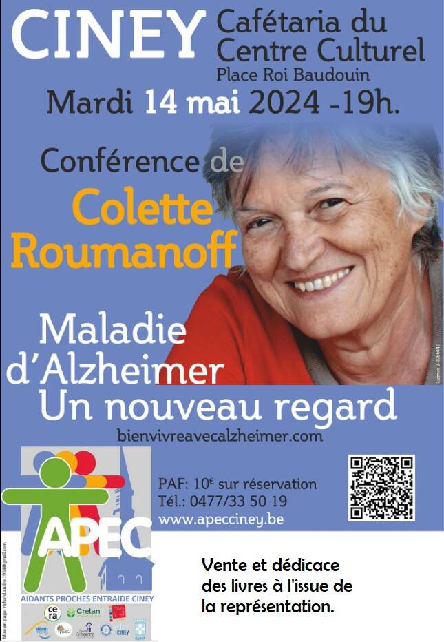 Faisant suite à cette conférence, voici un lien qui vous permet de visionner l'émission de Ma Télé qui en parle : https://www.matele.be/ex-cathedra-colette-roumanoff-les-malades-d-alzheimer-ne-sont-pas-des-martiens .